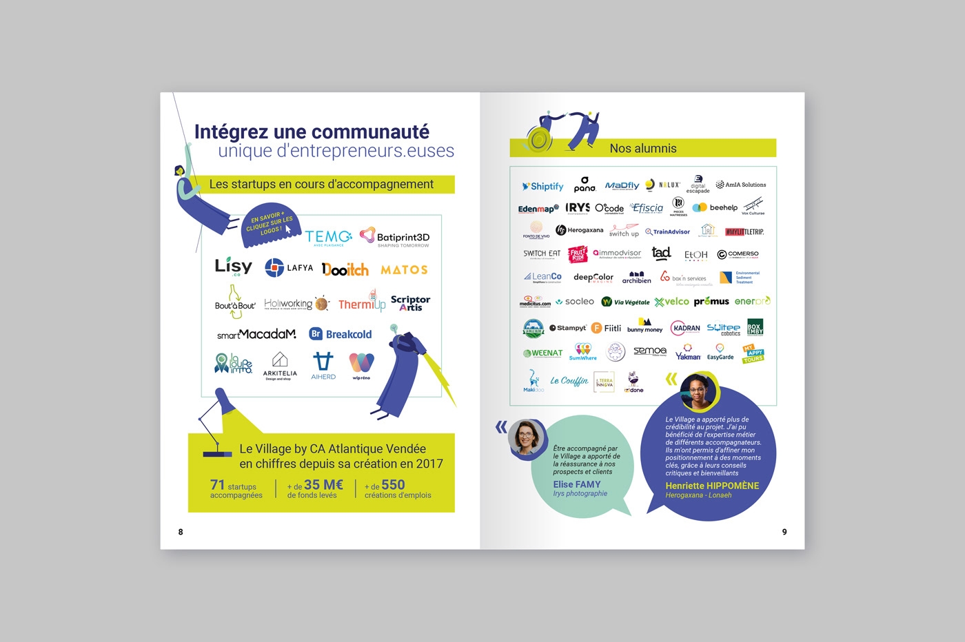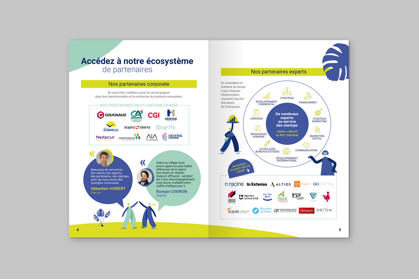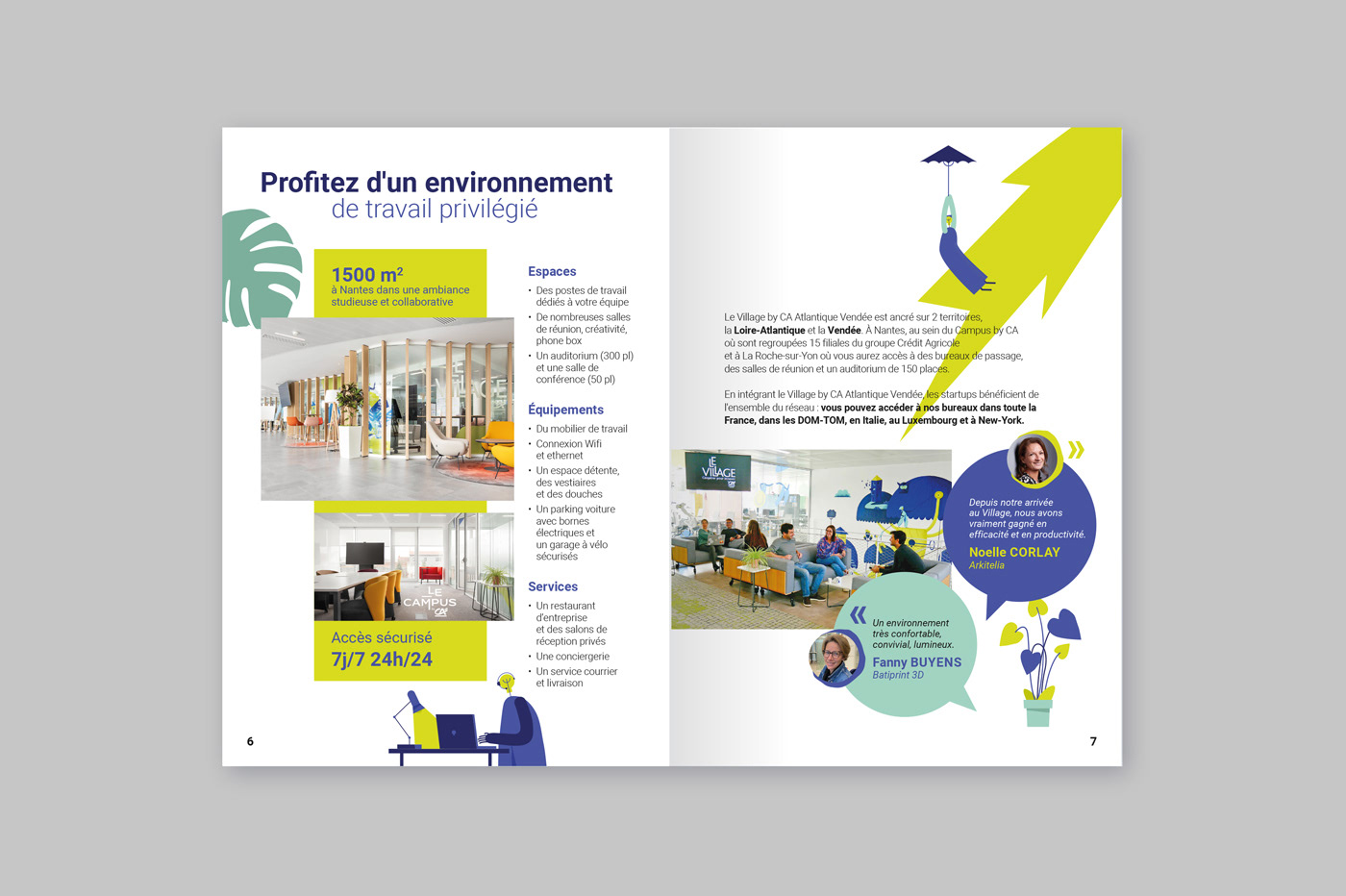 Le Village by CA Loire-Atlantique Vendée, situé au siège régional du Crédit Agricole à Nantes, m'a missionné pour la création graphique d'un livret à destination des futures startups souhaitant être accélérées et se développer. Un document vivant, pratique et interactif pour une inscription en ligne facilitée. Un guide accessible, ludique, en accord avec les valeurs de coopération et d'innovation du Village by CA Atlantique-Vendée.
