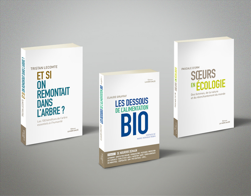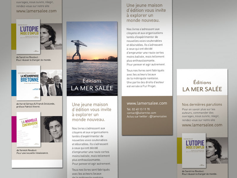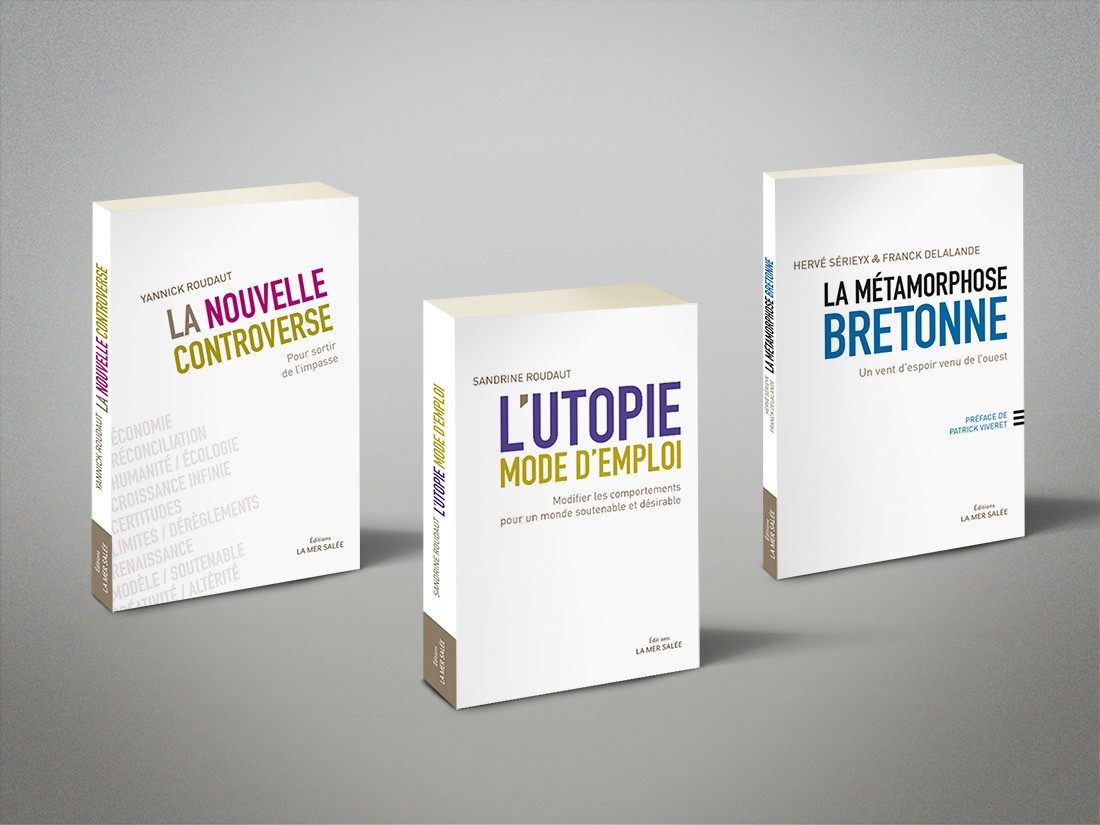J’ai accompagné jusqu’en 2017 Yannick et Sandrine Roudaut pour la création de l’identité visuelle de leur maison d’édition, et la ligne graphique éditoriale d’une de leur collection. L’approche est minimaliste, laisse la place au mots, aux idées, avec une dominante de blanc par souci de protection de l’environnement, en cohérence avec le positionnement de l’éditeur, particulièrement engagé sur ces questions. Les compositions typographiques laisse la part belle aux mots, qui en couleur racontent déjà une histoire. Les couvertures et les livres ont été déclinées en format e-book. Pour en savoir plus, découvrir les publications, les auteurs : www.lamersalee.com